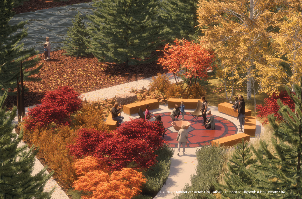 The first key site— Ajijaak Doodem, The Crane Gathering Space—is now complete, and design is underway for the second site: Giigoonh Doodem – The Fish Site. Planning for the remaining five sites will continue over the coming years as part of this shared and evolving vision.